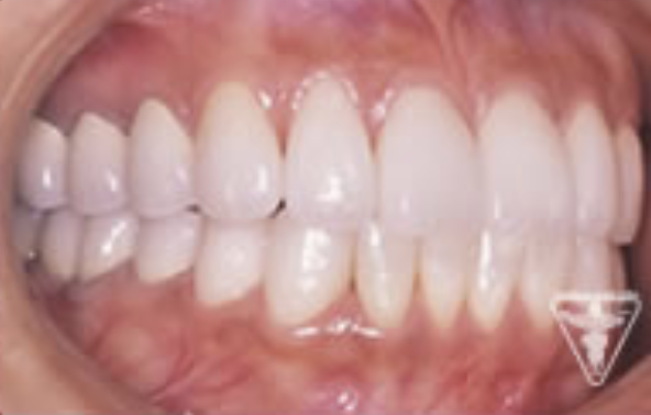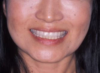 顎のずれを改善し、上下のかみ合わせの関係を理想的にして筋肉や関節の緊張が取れ、穏やかな表情に変られました。「良く噛めるようになった。」と評価をいただきました。