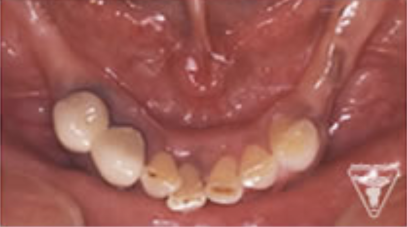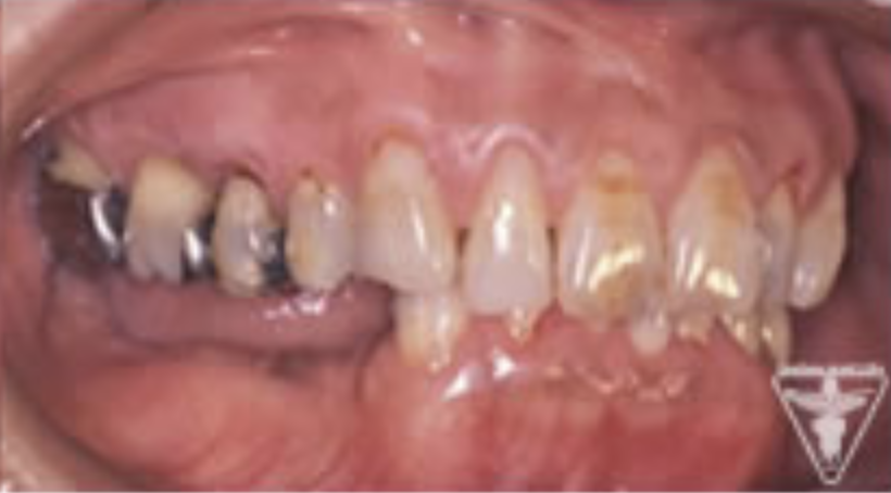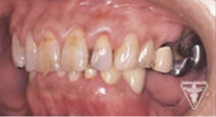 下の奥歯が左右なくなっており、かみ合わせが深くなっています。