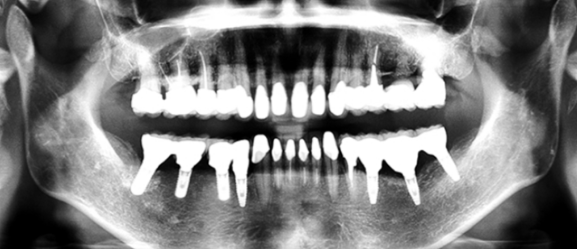 かみ合わせの深さを改善し、左下の骨を作り人工歯根で再構築しました。