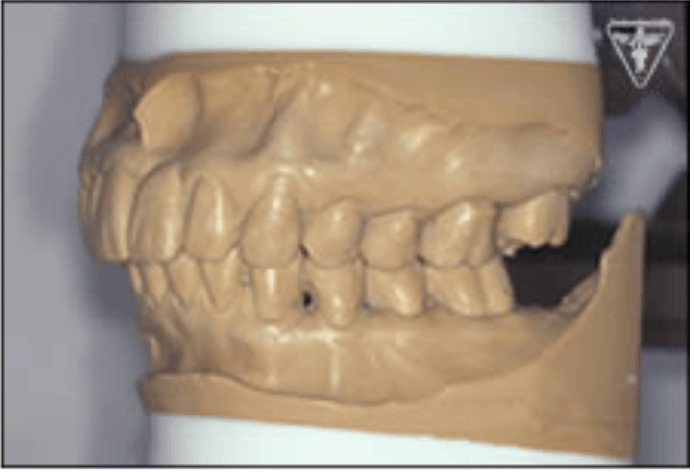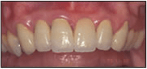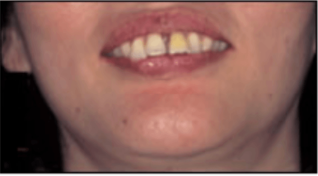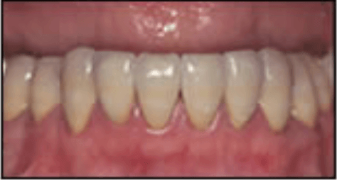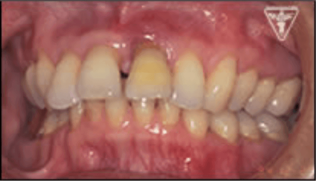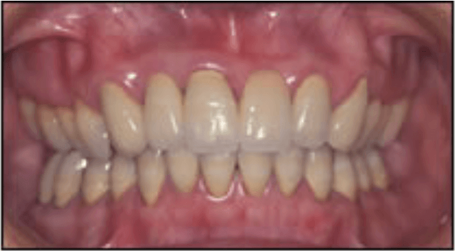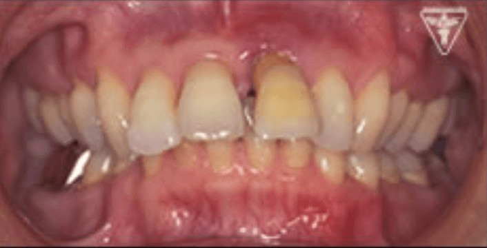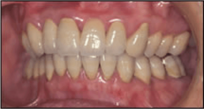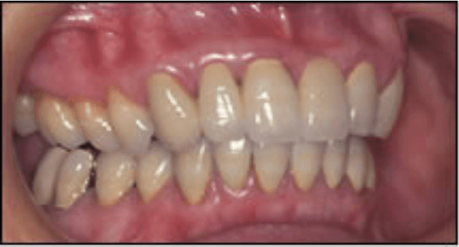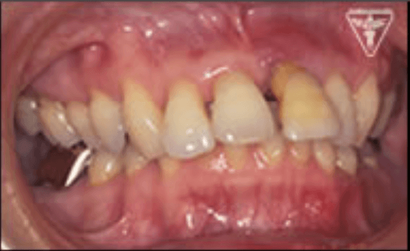 深い咬み合せと歯周疾患により上顎前突となり、口唇が閉じにくい状態となっている。
