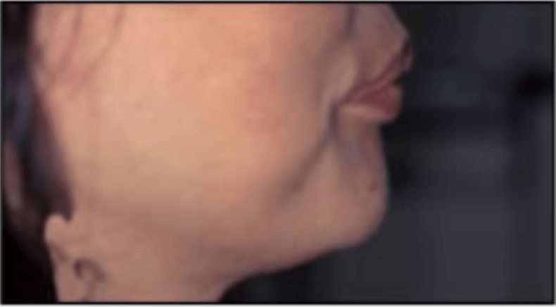また、口唇が閉じれない為、表情筋が過剰な緊張を呈しているのが認められる。