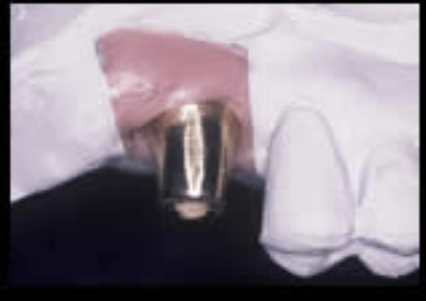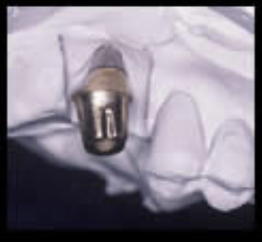 人工歯根と接合するアバットメントを示します。